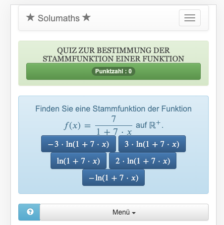 Quiz zur Bestimmung der Stammfunktion einer Funktion (quiz)