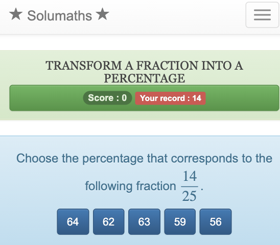 To succeed in this game on the calculation of the percentage of a whole number, kids must choose the good answer among a list of proposition.