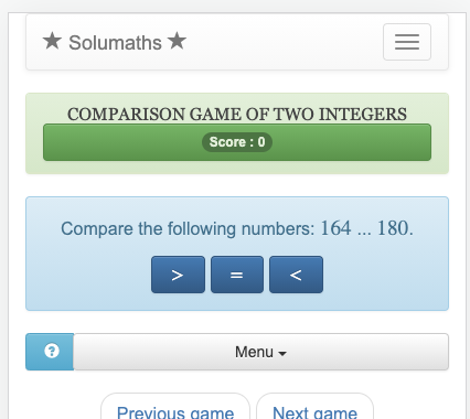 The goal of this integer comparison game is to find the operator (less than, greater than or equal to) to place between the numbers being compared.